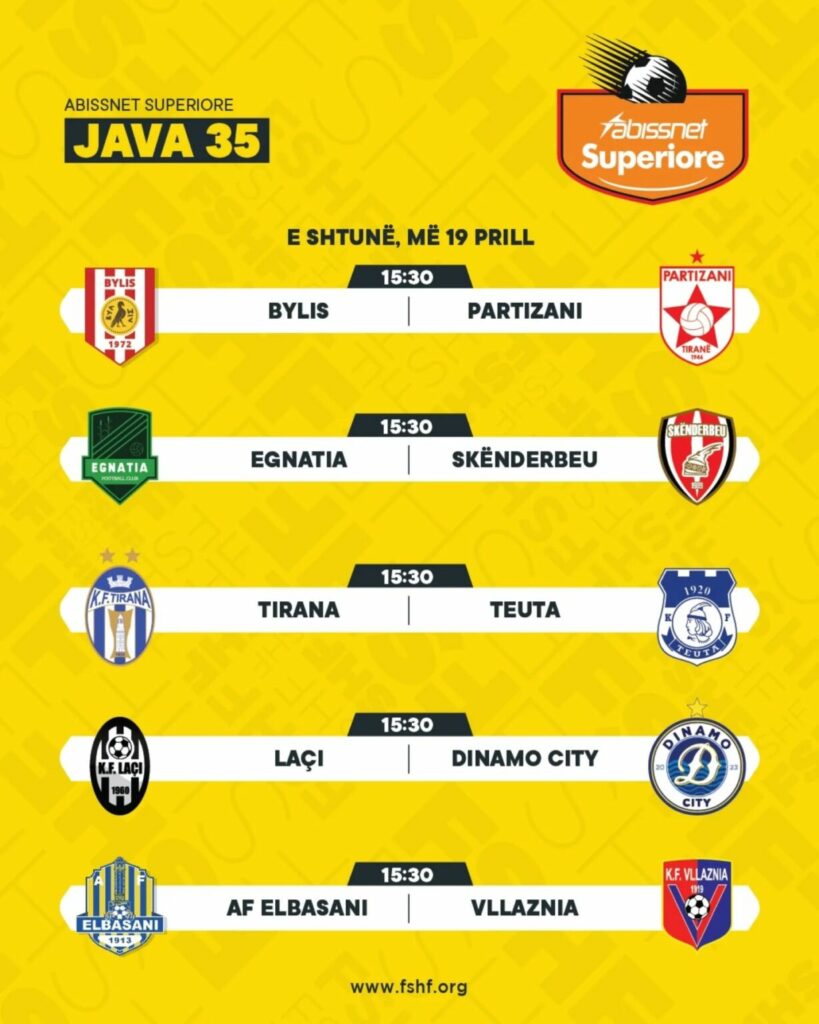Edicioni i 86-të i kampionatit Abissnet Superiore po i afrohet fundit, ndërsa të shtunën do të zhvillohen pesë ndeshjet e javës së parafundit. Të gjitha takimet do të luhen në të njëjtën orë, 15:30, duke garantuar shumë emocione në çdo stadium.
