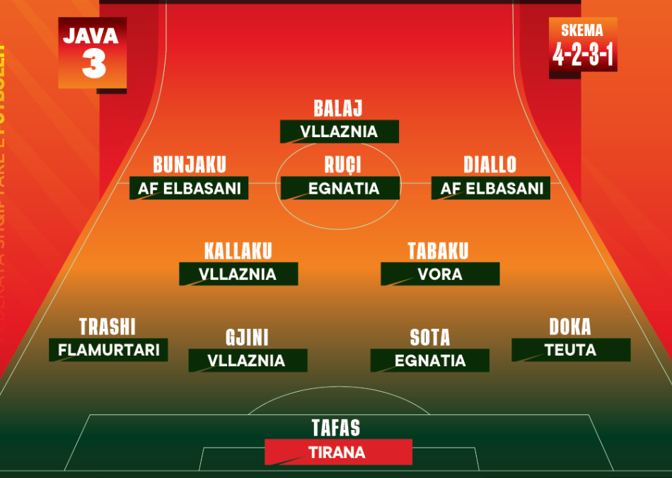 Pas përfundimit të javës së 3-të të “Abissnet Superiore”, trajnerët e ekipeve kombëtare kanë përzgjedhur 11-shen më të spikatur të javës, sipas skemës 4-2-3-1.