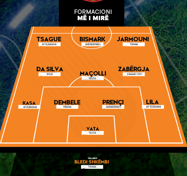 Në mesfushë janë Baton Zabërgja (Dinamo City), Xhoeli Macolli (Teuta) dhe Victor Da Silva (Bylis).