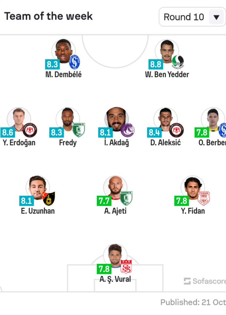 Ajeti arriti të jepte edhe një asist në ndeshjen fundit në kampionat. Ai është vlerësuar me notën 7.7 nga “Sofascore”, duke u përfshirë në formacioninmë të mirë të javës në Ligën e Parë turke.