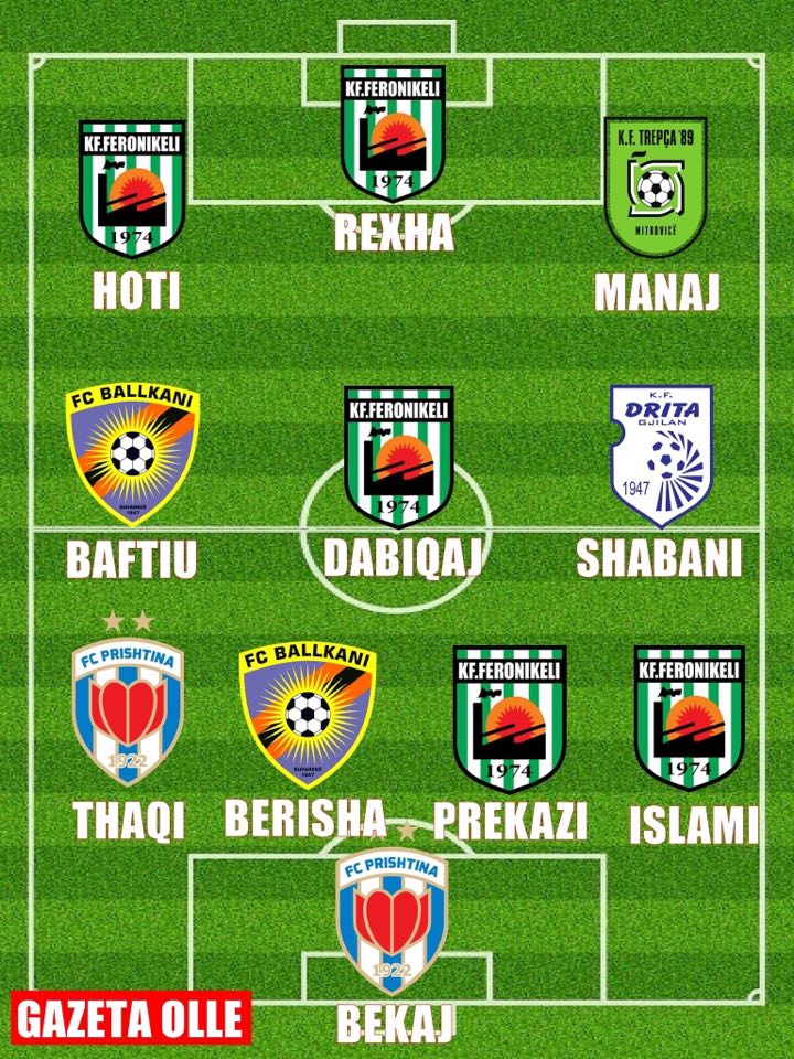 Gjatë ditës së sotme është mbajtur ceremonia e çmimeve te Laureatët, sa i përket futbollit në Kosovë. Cuditërisht asnjë lojtar i Gjilanit nuk është pjesë e saj, pavarësisht se kjo skuadër që drejtohet nga Mezani ka bërë super sezon deri tani. Formacioni dominohet nga klubi i Feronikelit, por nuk mund të mungonin talentet më në zë si Manaj dhe Baftiu. /Sport Ekspres/