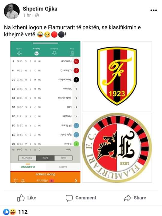 “Na ktheni logon të paktën se klasifikimin e kthejmë vetë”, shkruan Gjika. /Sport Ekspres/