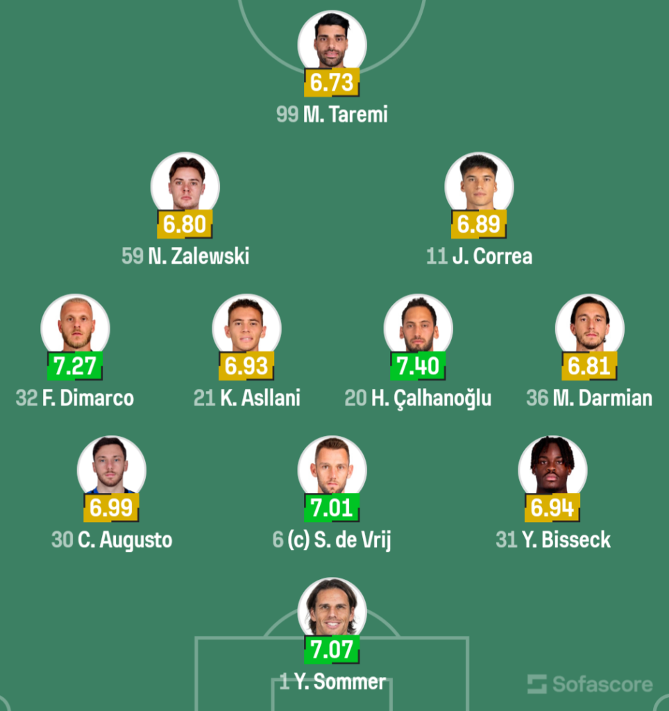 Inzagi ka befasuar me formacionin e përzgjedhur për këtë sfidë. Kristjan Asllani do të jetë në fushë nga minuta e parë e takimit. Përkrahë tij në mesfushë do të jetë Hakan Çalhanogluja. Më të avancuar përpara do të gjenden të vendosur Korrea dhe Zielinski, ndërsa në majë të sulmit do të qendrojë i vetëm Taremi./Sport Ekspres/