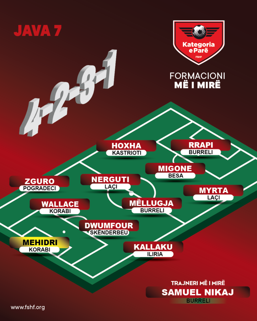 Pas përfundimit të javës së 7-të të sfidave të Kategorisë së Parë, teknikët e ekipeve kombëtare kanë përzgjedhur 11-shen dhe trajnerin më të spikatur të kësaj jave.