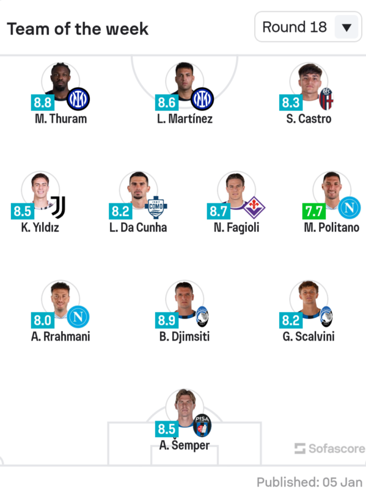 Së bashku me Skalvinin, kapiteni i Kombëtares së Shqipërisë dhe kapiteni i Kosovës përbëjnë repartin e mbrojtjes në këtë formacion. Një nisje mjaft e mirë e vitit 2026 për të dy lojtarët, të cilët janë shndërruar në pika kyçe për Atalantën dhe Napolin./Sport Ekspres/