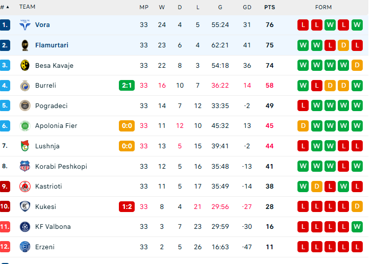 Vora 0 – 1 Flamurtari (Ememe 33′)
