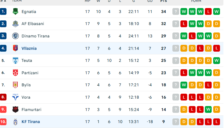 Renditja e Superiores/ Vllaznia në “rënie të lirë”, barazon edhe me Tiranën, Bylisi fiton kundër Flamurtarit