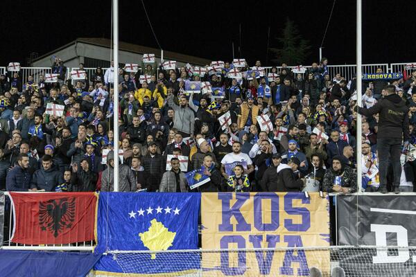 Një korbi i zi që jep lajme të këqija, varre dhe disa serbë të varur, kishin mbishkrimin: “Sa herë t’i afroheni Kosovës, do t’i hapni varre vetes”. /Sport Ekspres/