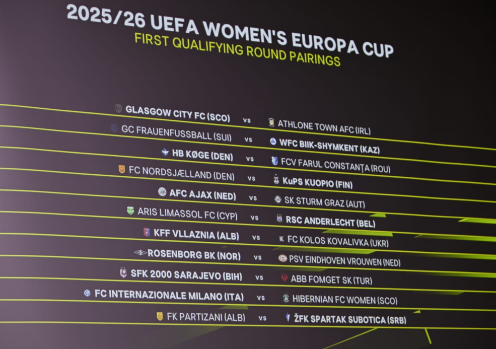 UEFA Women’s Europa Cup, Vllaznia dhe Partizani mësojnë kundërshtaret e raundit të parë kualifikues