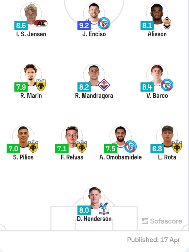 Paraqitja e Stavro Pilos u vlerësua me notën 7 nga “Sofascore”. Mbrojtësi në fjalë është përfshirë në formacionin më të mirë të javës në Ligën e Konferencës. Ndërkohë krahu i djathtë i mbrojtjes përbëhet nga një tjetrr lojtar me origjinë shqiptare, Rota./Sport Ekspres/